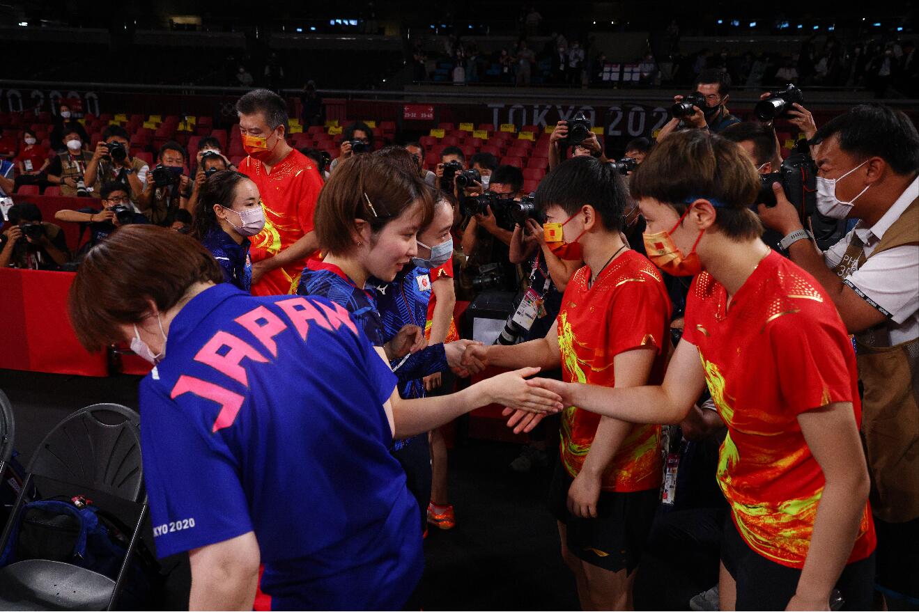 奪冠夜,還有一眾前冠軍邊觀戰邊嘮嗑,賽後日本倆女將又哭了……是高興的吧,打進決賽拿到銀牌了……還真是挺委屈的哭………她們還真以為能拿著金牌嗎……擺不正位置,哈哈哈,以上對話源自張怡寧、王楠和李曉霞。想想也是,在她們的時代,冉冉升起的可是三面國旗。