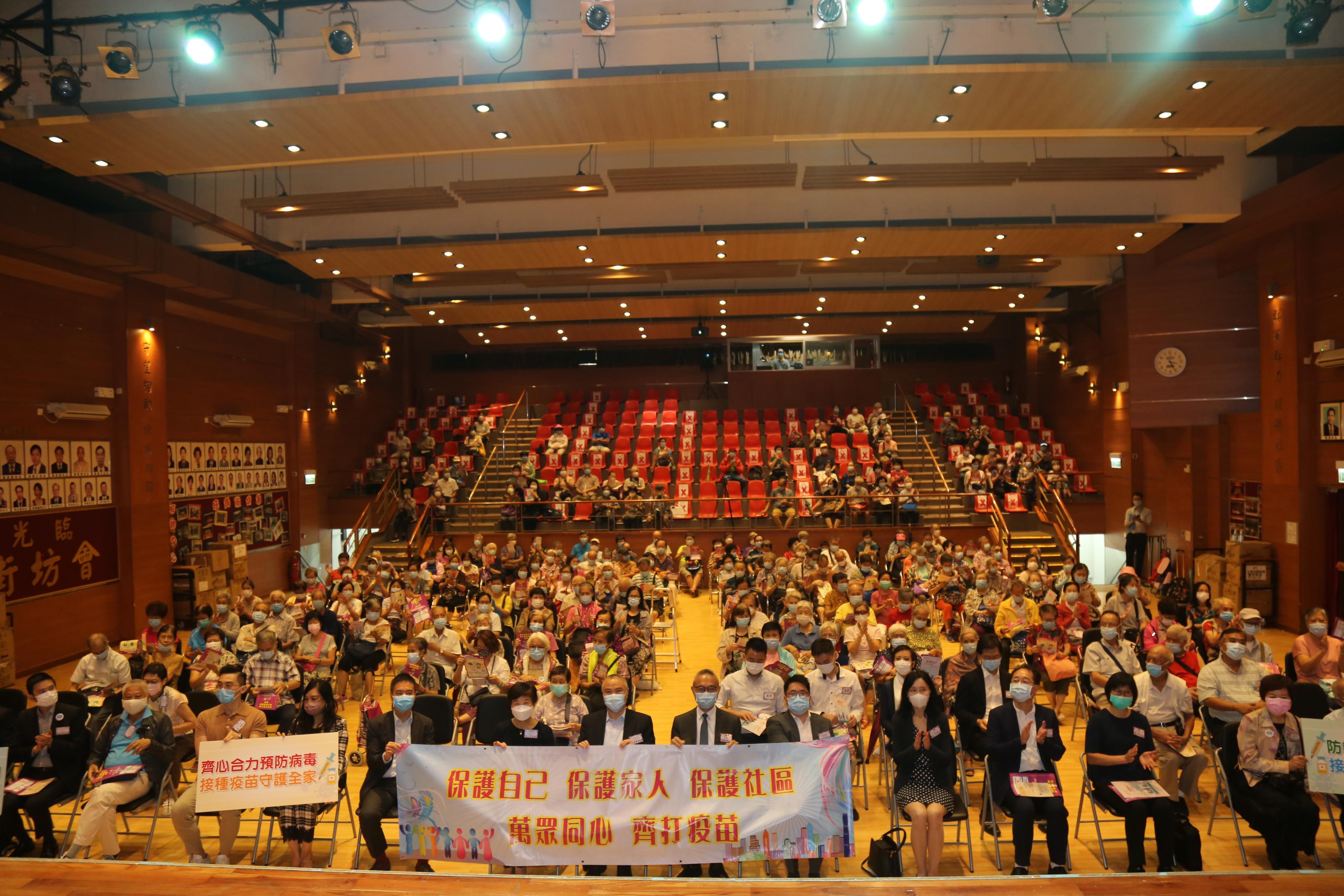 活動上,衛生署油尖旺區長者健康外展分隊派員向現場250名長者講解了有關接種疫苗資料,王予婷及符迪解答接種疫苗的常見問題,並鼓勵長者盡快接種疫苗,保護自己、保護家人,保護社區。