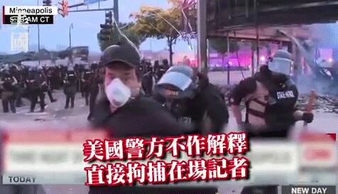 而在今次美國騷亂中,美國警察不作解釋即拘捕記者。當地時間5月29日,CNN記者在抗議現場進行現場直播時,被警方逮捕並戴上手銬。在被捕前,該名記者曾向警察表明了自己的身份。而該記者的其他兩名同事——一名製作人和一名攝影師隨後也被警方逮捕,都被戴上了手銬。