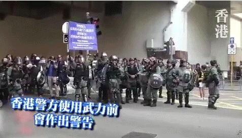 在面對大批暴力「示威者」衝擊時,香港警察會不斷作出舉旗警告,盡量避免使用武力