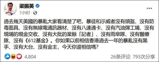 5月31日,全國政協副主席、香港特區前行政長官梁振英發文就評論說: