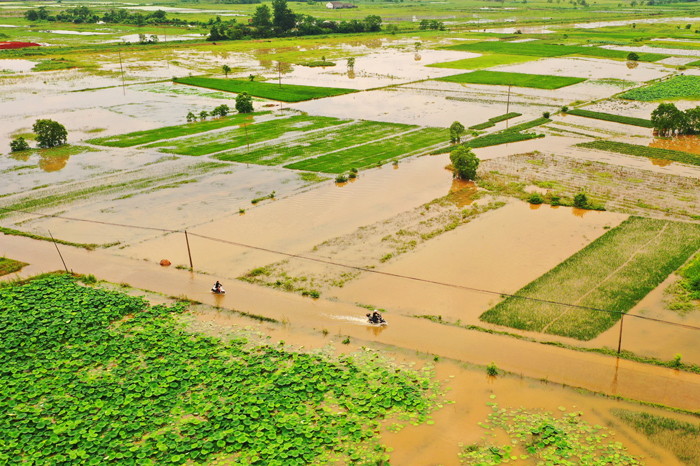 图为6月6日,江西省吉安市泰和县澄江镇,暴雨导致农田、道路被淹。 中新社发 邓和平 摄