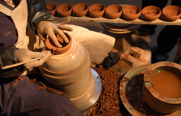 宜兴紫砂陶制作技艺,伴随着中国茶文化的发展,明代晚期以后,紫砂陶制作艺人经过长期探索,其中最具代表性的是陶刻,它是诗文、金石、书画、篆刻艺术与紫砂制作技艺的完美结合,深符中华民族传统的审美标准,尤与文人阶层的审美情趣相吻合。因此,紫砂技艺一直富有实用和艺术鉴赏的双重特色。经过千百年的传承,紫砂陶器的生存空间、技艺特征、衍生谱系、传统文化内涵等方面,迄今仍呈现良好的状态。2006被列入第一批国家级非物质文化遗产名录。