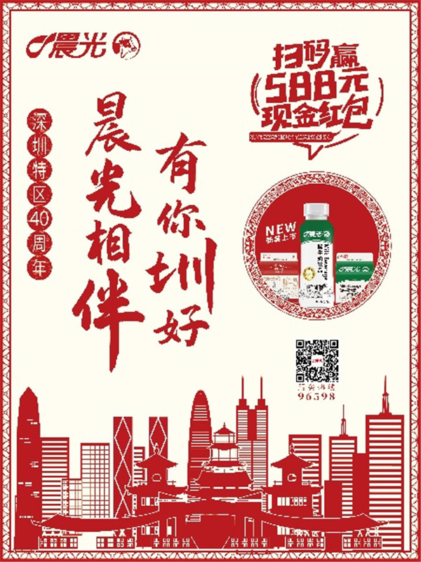 【香港商報網訊】作為深圳本土的國營乳製品公司,晨光乳業以「深圳特區40周年,晨光相伴,有你圳好」為主題,致敬深圳經濟特區成立40周年。作為一家「深圳老字號」品牌企業,晨光乳業以40周年為契機,推出全新升級包裝的240g酸牛奶飲品以及掃碼贏588元紅包等多個主題活動,在與千萬深圳市民分享晨光40年的喜悅之情的同時共慶深圳經濟特區成立40周年!