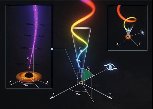 基于「慧眼」卫星这些观测数据,国际合作团队发现MAXI J1820+070在很宽的能段范围内都存在低频准周期振荡现象,最高能量超过200keV,比慧眼卫星之前其他卫星发现的准周期振荡能量上限几乎提高了一个数量级。因此研究团队提出,该低频准周期振荡应该产生于黑洞视界附近喷流的进动,很可能由黑洞自转产生的广义相对论的时空参考系拖曳效应产生。