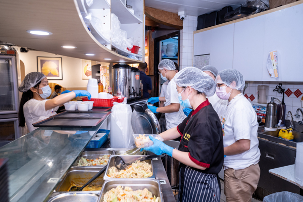 銀杏館與香港青年協會一連10日會於銀杏館5間分店派發「笑容福飯」,圖為參與活動的員工合照。