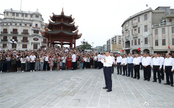 習近平總書記13日下午來到廣東省汕頭市小公園開埠區,走進開埠文化陳列館、僑批文物館,了解汕頭開埠歷史、設立經濟特區以來的建設發展情況,和潮汕僑胞心繫家國故土、支持祖國和家鄉建設的歷史。隨後,習近平步行察看開埠區街區人文歷史風貌,同市民群眾親切交流。(圖源:新華視點)