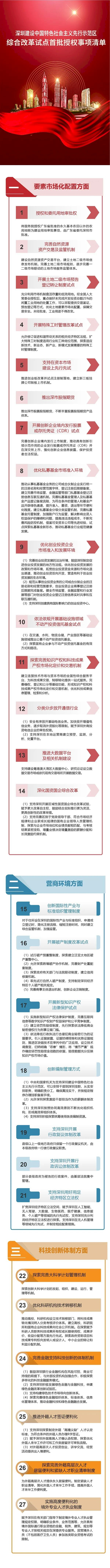 《深圳建設中國特色社會主義先行示範區綜合改革試點首批授權事項清單》主要內容如下。