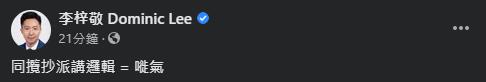新民黨社區主任李梓敬今日(1日)在社交平台表示,與「攬炒」派談邏輯等同白費心思。