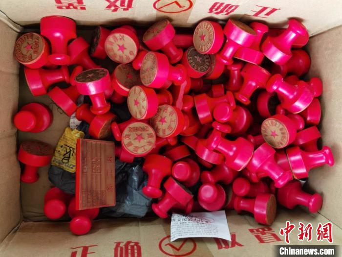 警方在製假窩點起獲的假公章。(警方供圖)