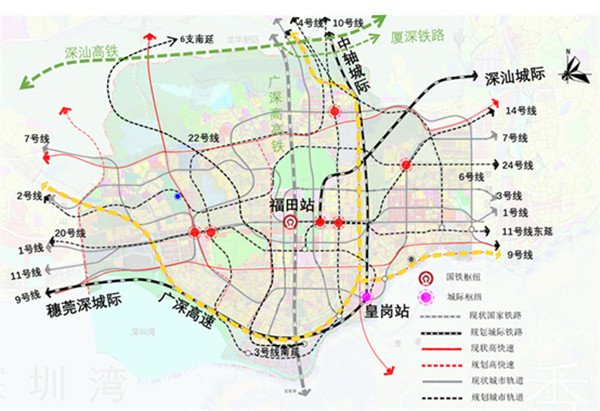 韓浩提到,目前,福田已經形成了多層級的樞紐架構,未來將是形成完整的一體化體系。在進一步提升福田對外樞紐能級方面,福田正在開展深汕高鐵經廣深港客專至福田方向聯絡線可行性研究;加快建設車公廟、崗廈北、黃木崗、香蜜湖交通樞紐。