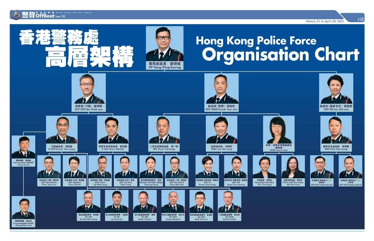 在今日出版的最新一期警方刊物《警聲》中,警務處公布最新的高層管理架構圖。