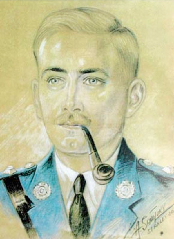 殉職的「九龍及新界警察局」局長、英籍「署任助理警務處長」羅士琴畫像,此畫像為他於二戰時被日軍囚禁於赤柱戰俘營時,由俄羅斯籍輔警營友Savitsky 繪畫。林建強提供圖片