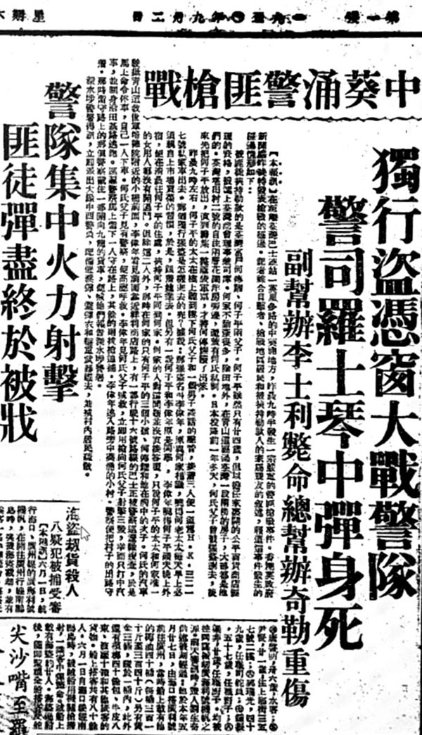 1950年9月2日,《大公報》報道了此宗荃灣警匪槍戰案。