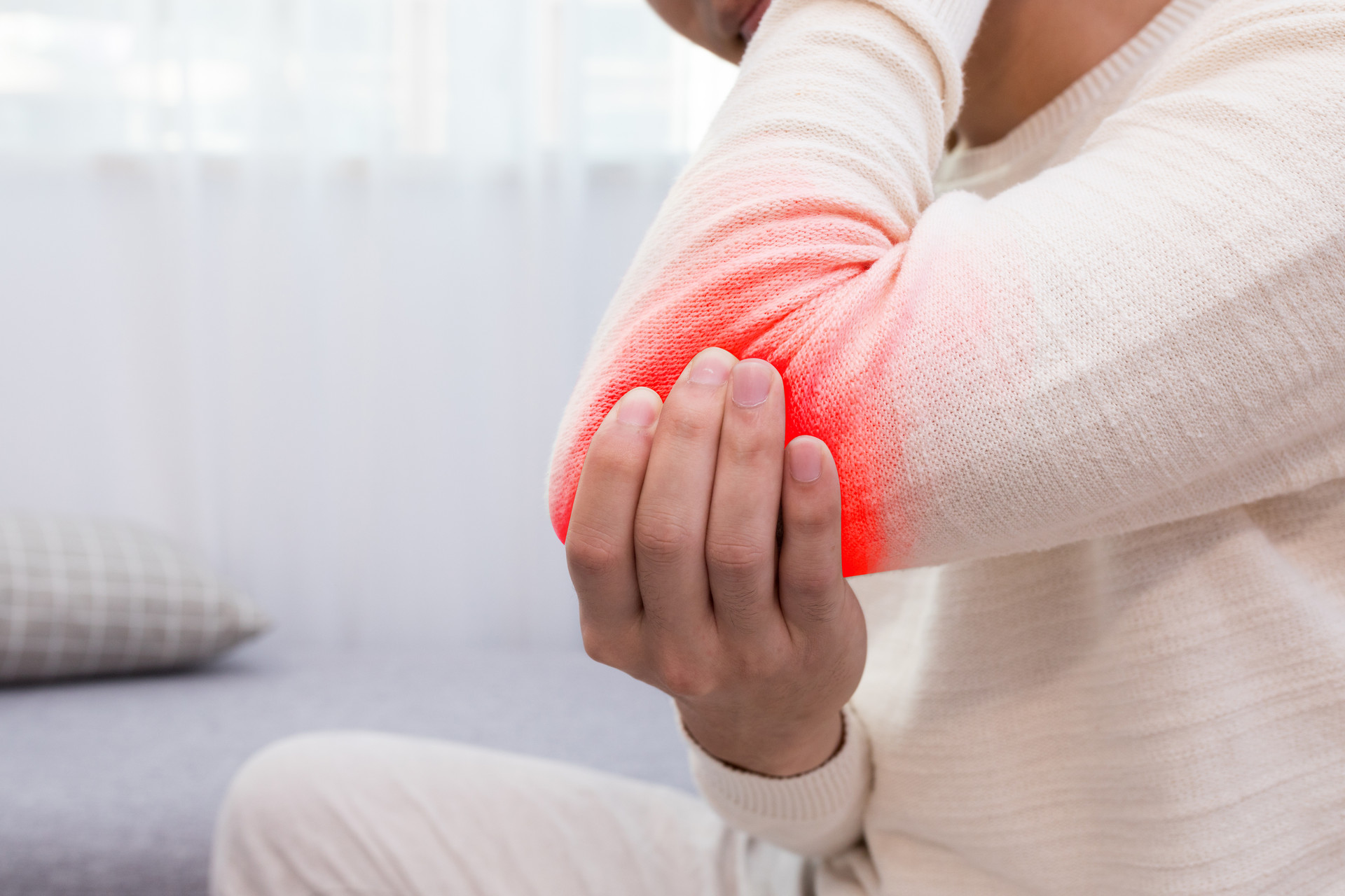 肘部酸脹疼痛,握物提物酸痛無力,街坊鄰里常稱它為「網球手」,實際上此種肘部痛,在醫學上稱為「肱骨外上髁炎」,也就是說肘外側部的「筋」發炎,這種病痛主要是由於慢性結累性損傷引起的,而且容易反覆發作,導致肱骨外上髁肱橈肌群腕伸肌腱附著處發生撕裂性損傷,出血後黏連、增厚,產生無菌性炎症。網球運動員,打網球需要前臂用力過多,易得此症,故被稱為「網球肘」。中醫認為多由氣血虛弱,血不榮筋,肌肉失去溫煦,筋骨失於濡養所致發病。