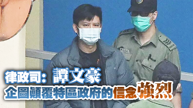 律政司表示,譚文豪參加「初選」並曾出席2020年3月25日的記者會,並表明如行政長官不在其施政報告中落實所謂「五大訴求」,會利用立法會議員的否決權,否決財政預算案,最終迫使行政長官辭職。另外,譚文豪於2019年9月2日將聯署信交給美國參議院及美國國會眾議院,促請美國國會參眾兩院委員會通過《香港人權與民主法案》,損害香港政府及市民。並且譚文豪Facebook專頁的發文均顯示出,他希望顛覆香港政府的強烈信念及熱誠。