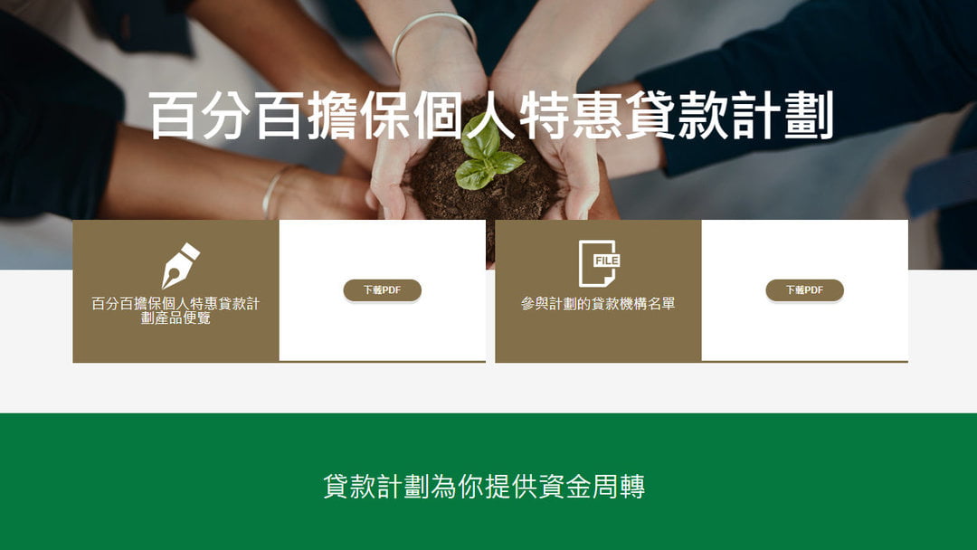 香港按證保險有限公司表示參與計劃機構名單及它們的查詢熱線已載於「百分百擔保個人特惠貸款計劃」專頁www.hkmc.com.hk/plgs。