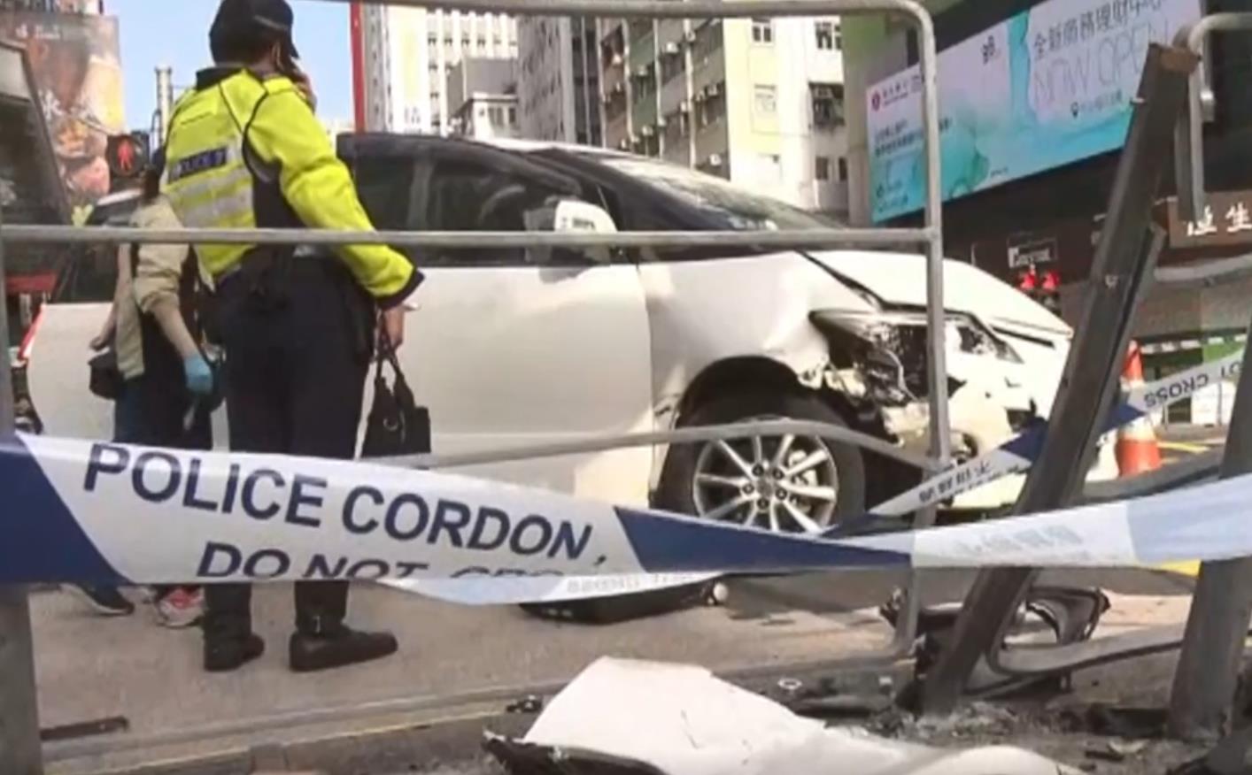 該輛私家車沿彌敦道往尖沙咀方向行駛,駛至近亞皆老街時,失控撞向路邊鐵欄,司機不知所終。