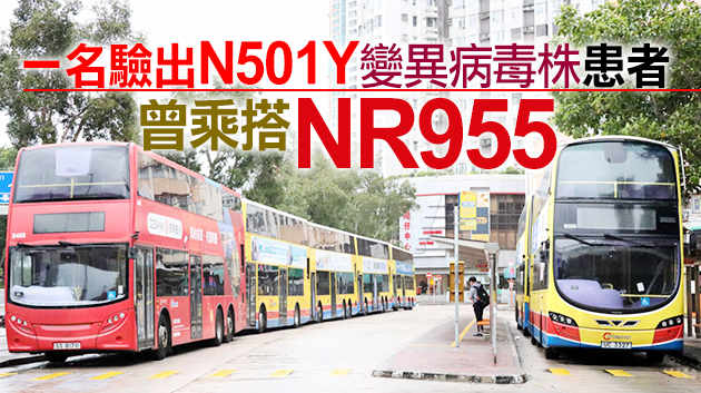 任何在5月12日至5月14日、5月17日至5月18日、5月20日至5月21日、5月24日至5月28日或5月31日至6月2日,任何一日上午7時至上午7時30分期間曾乘搭任何往來天水圍嘉湖山莊麗湖居及港鐵西鐵線天水圍站(途經天水圍嘉湖山莊樂湖居)路線號碼 NR955 的居民巴士的人士(包括但不限於全職、兼職和替假員工及乘客),須於6月11日或之前接受檢測。