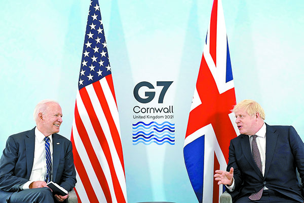 美國總統拜登於當地時間10日與英國首相約翰遜在康沃爾郡會晤。英國首相府周三表示,二人料將同意共同努力,盡快恢復兩國旅遊。二人屆時亦將簽署新版的《大西洋憲章》,確認在多個共同挑戰上合作、並趁此機會商談在當前英國脫歐後鞏固美英「特殊關係」。