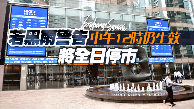 若黑色暴雨警告信號在9時前解除,早上交易時段則會在信號解除後兩小時恢復交易。