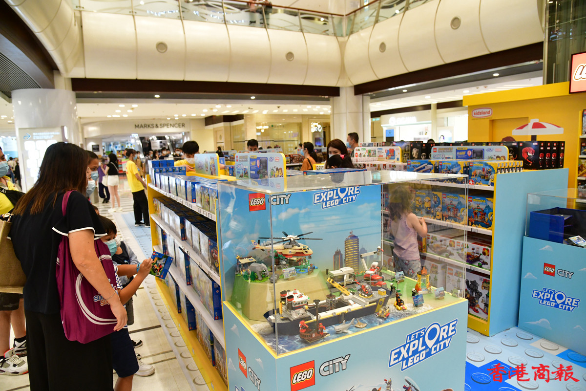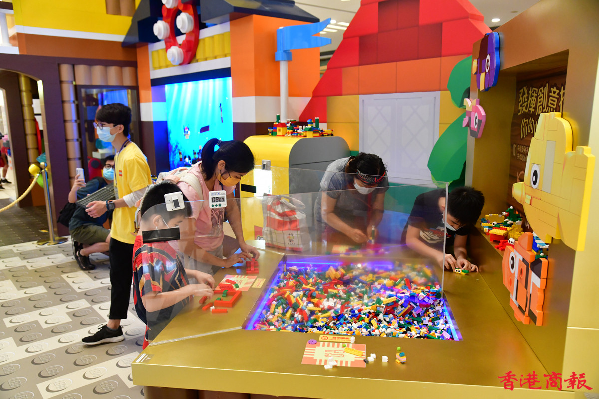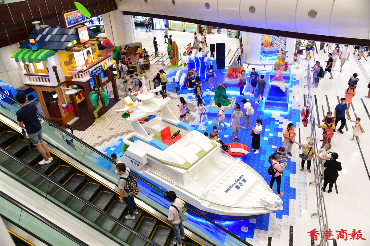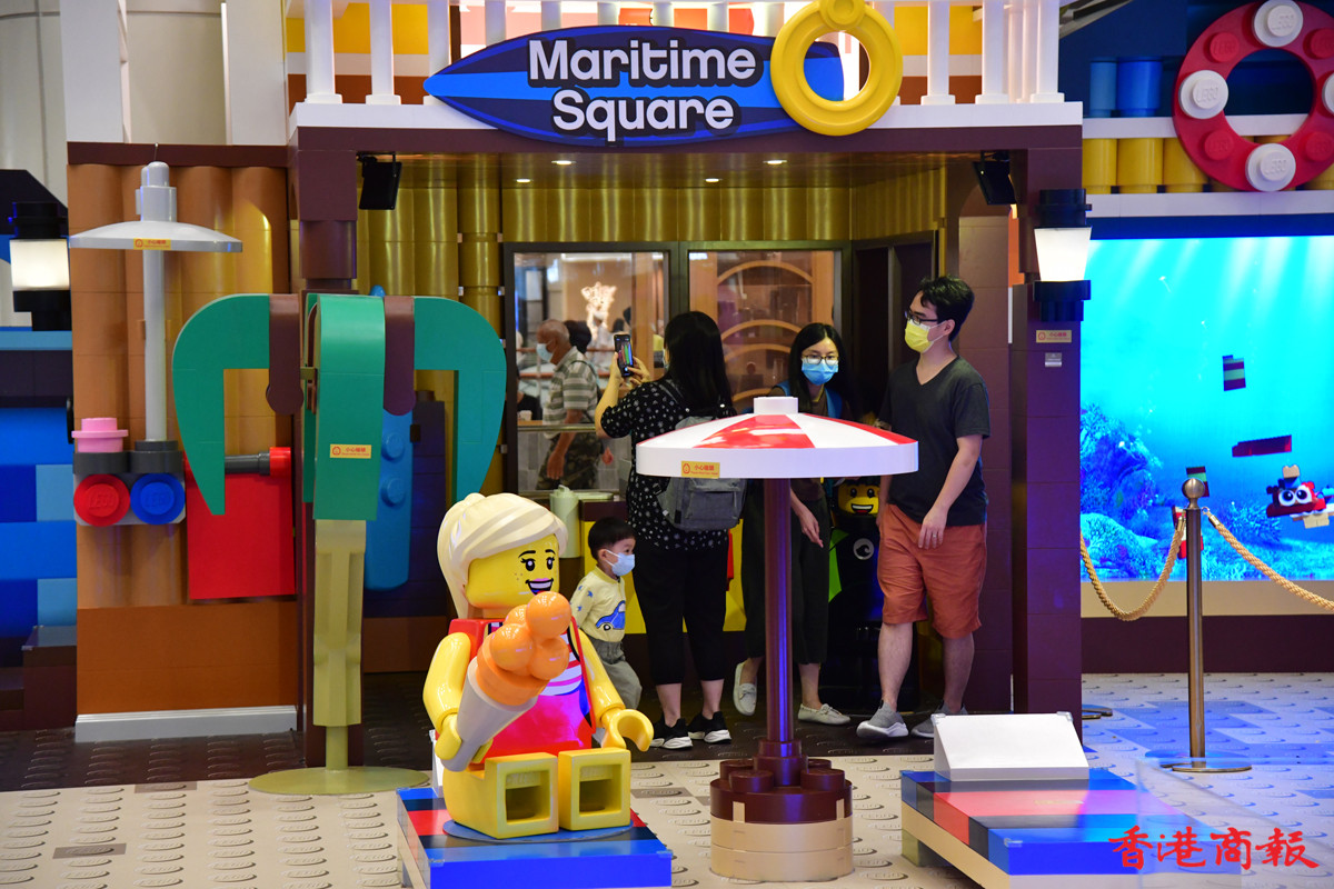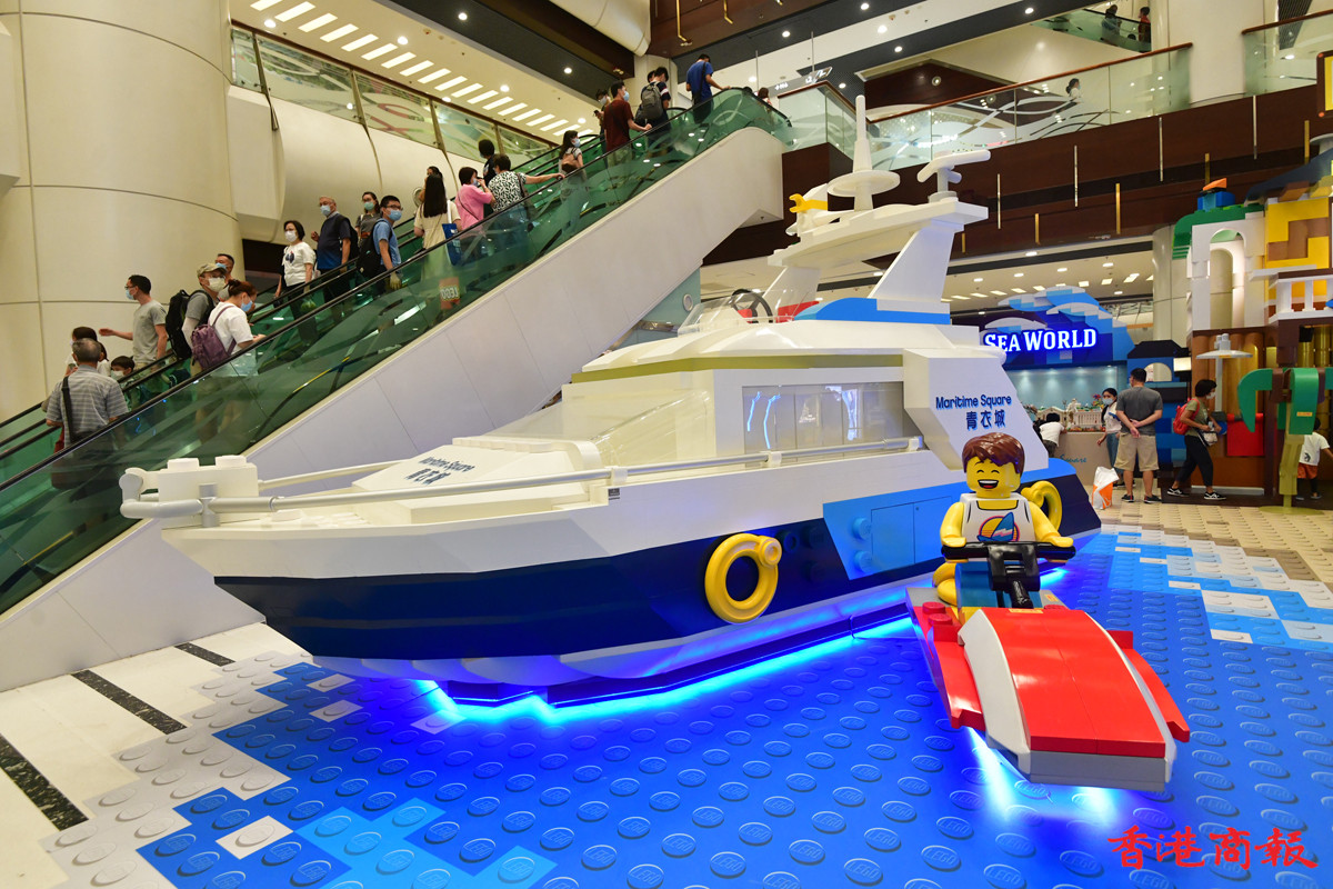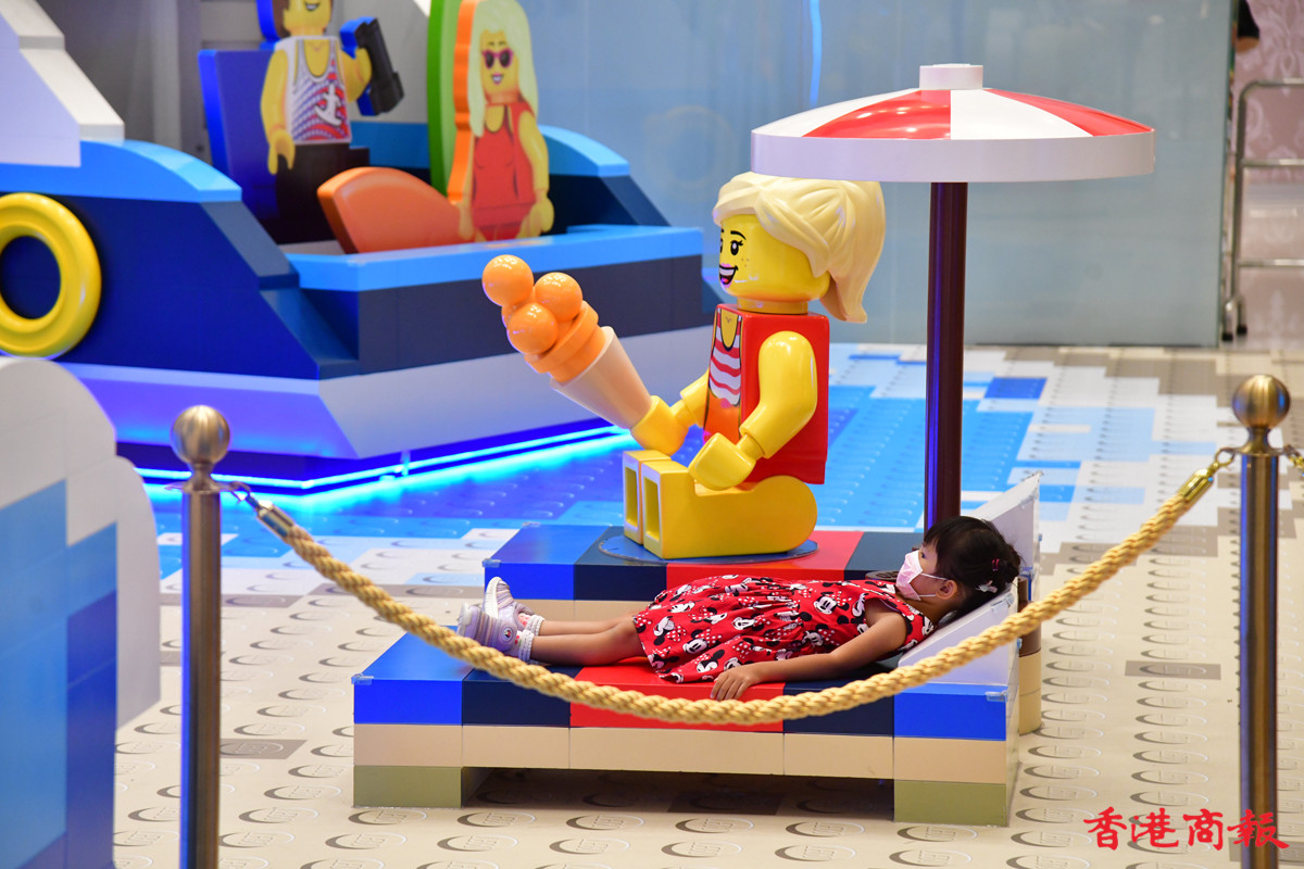 近日多個大型商場展示多款LEGO模型裝置,其中青衣城的海底世界展區,吸引不少學童到來大開眼界。砌模型不只小朋友情有獨鍾,連父母也愛不惜手,很想擁有一副模型逐塊拼砌去重拾兒時回憶。(記者 崔俊良攝)