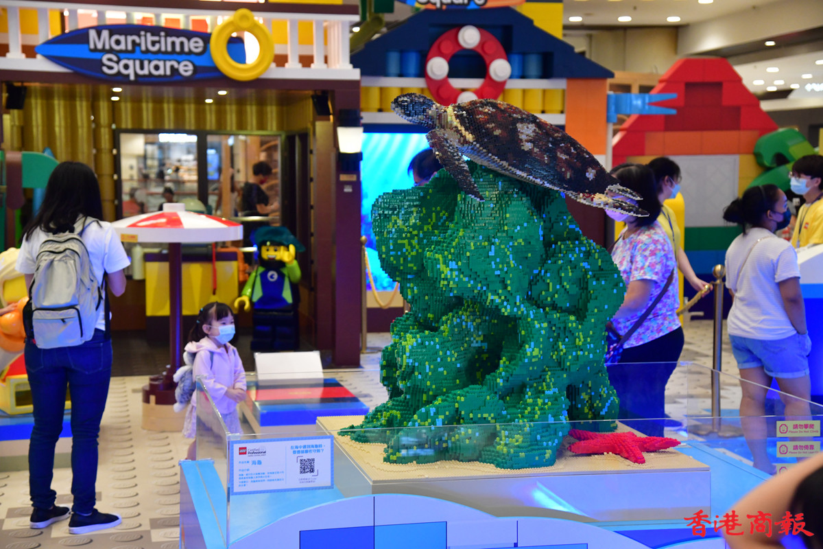 看到眼前的魔鬼魚、海龜、中華白海豚,以至鎚頭鯊,都是栩栩如生,七彩繽紛,原來全由LEGO砌成的模型,以一塊塊LEGO拼砌出海底世界的多款海洋動物,也讓小朋友可了解珍貴的海底生物,更珍惜愛護海洋。