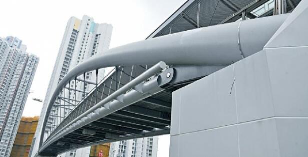 天橋屬分階段興建,採用拱橋與桁架結構,以克服天橋長跨度而缺少中段支撐的限制。