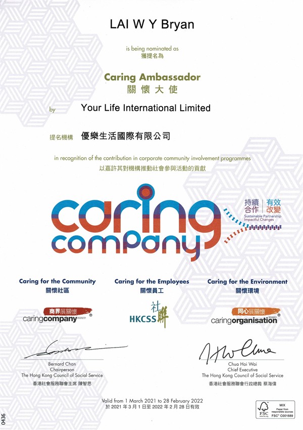 優樂生活國際有限公司在推動企業社會責任方面表現良好,持續多年獲得「商界展關懷」。