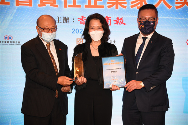 「2021卓越社會責任企業家大獎」頒獎典禮26日下午在本港海景嘉福洲際酒店隆重舉行,方劉小梅、趙芝勝、劉相尚等14位企業家榮獲「2021卓越社會責任企業家大獎」;盈健醫療集團有限公司榮獲「2021卓越社會責任企業大獎」。