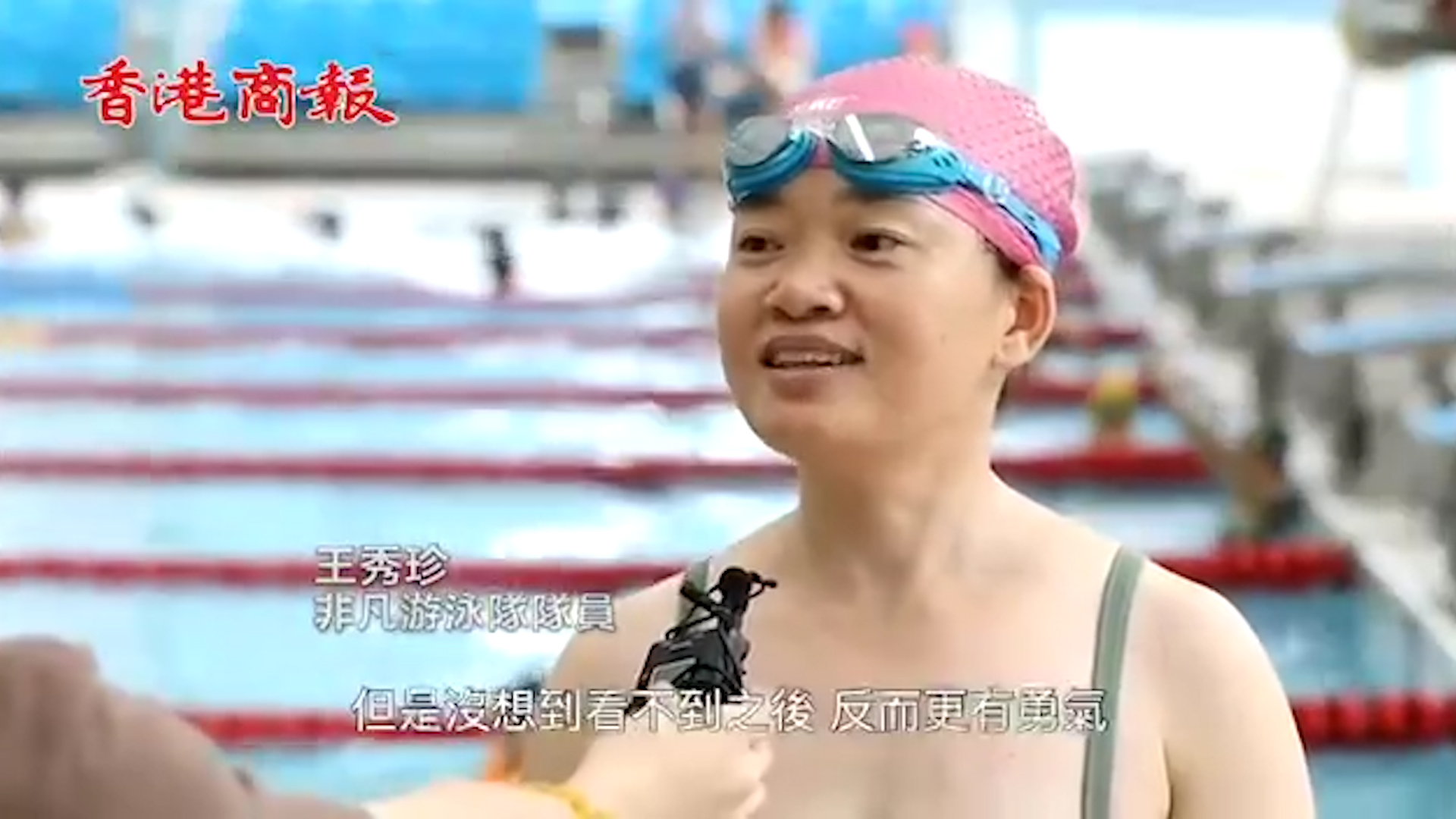視障人士游泳最困難的是辨別方向和測算距離,一般他們只能通過和水線的碰撞來保持前進方向。非凡游泳隊隊員王秀珍說:「我是後天失明的,以前看得到的時候,我想我這輩子應該是都不敢學游泳,但是沒想到看不到之後,反而更有勇氣,可能是經歷了一下挫折之後,意志力也變得比較頑強吧。」即使在練習時遇到很多困難,但他們仍然以堅毅的精神克服困難,並用自己的方式實踐健康、拼搏的體育精神。(視頻:Pat)