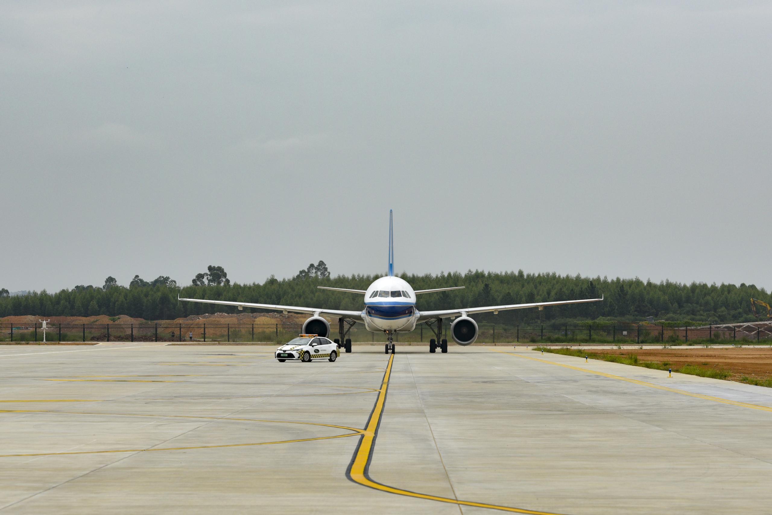 南航A320客機平穩降落在韶關丹霞機場跑道上