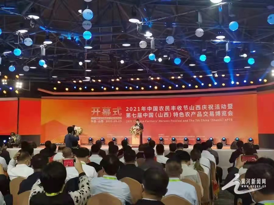 23日,2021年中國農民豐收節山西慶祝活動暨第七屆中國(山西)特色農產品交易博覽會在山西晉中國家農高區(山西省農產品國際交易中心)啟幕。