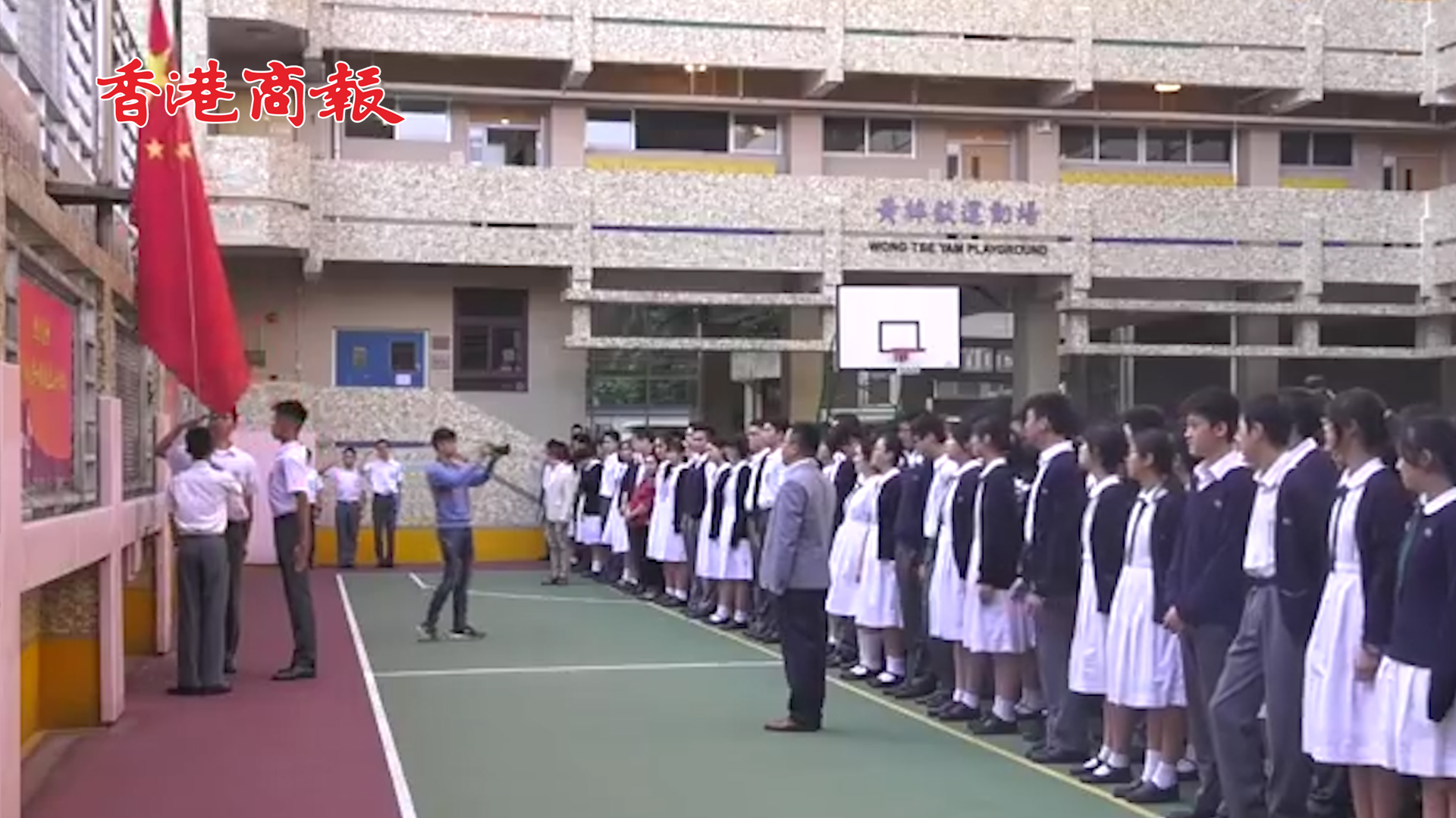 香港回歸以來,駐香港部隊持續組織香港青少年軍事夏令營和香港大學生軍事生活體驗營活動,累計培訓5000多位香港青少年學員。夏令營後,香港培僑中學組建了升旗隊,學校升旗時首次運用中式隊列動作。一起看香港中學生用中式隊列升國旗的畫面。(視頻:謝燁挺)