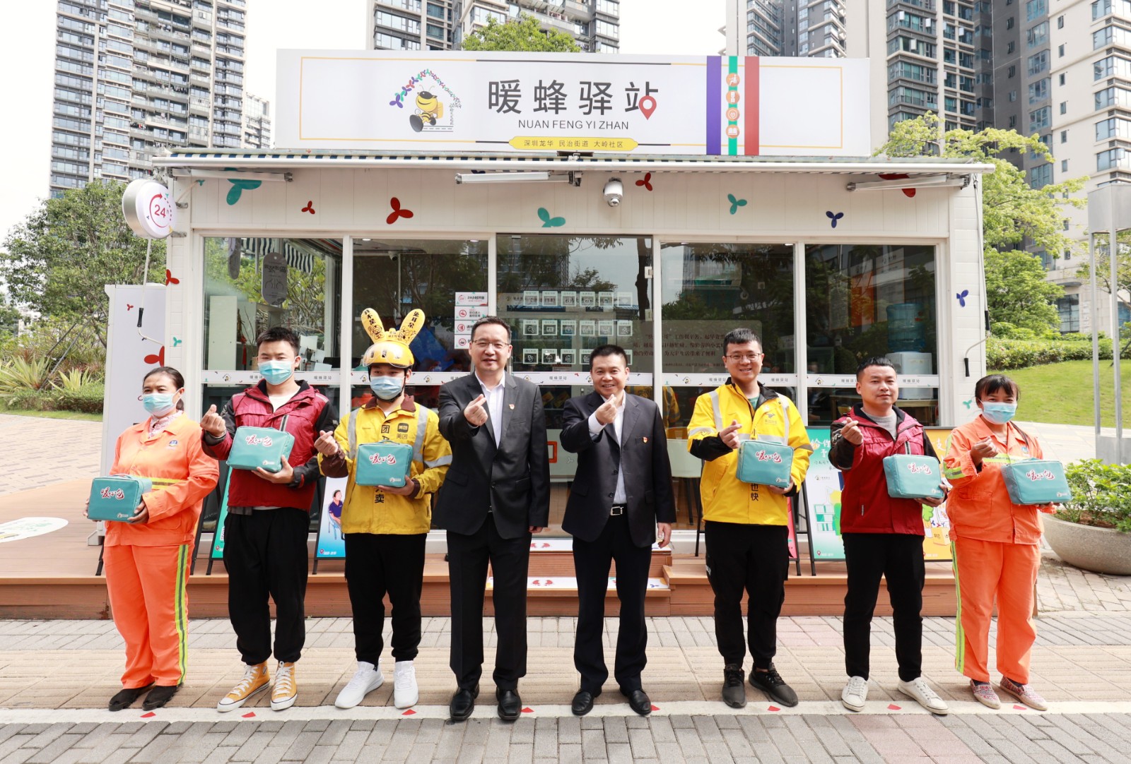 活動現場,民治街道奮鬥者廣場(中國共產黨人精神譜系主題)、龍華區第100個黨群服務V站、龍華暖心基金、暖蜂驛站正式啟用。市委指導組、區領導一行參觀了民治奮鬥者廣場(中國共產黨人精神譜系主題)和暖蜂驛站,為民治轄區新就業群體代表贈送暖心包,讓他們感受到龍華這座城市給予他們的關懷,同時也鼓勵他們工作之餘積極融入社區治理中,共同為龍華改革發展而努力奮鬥。