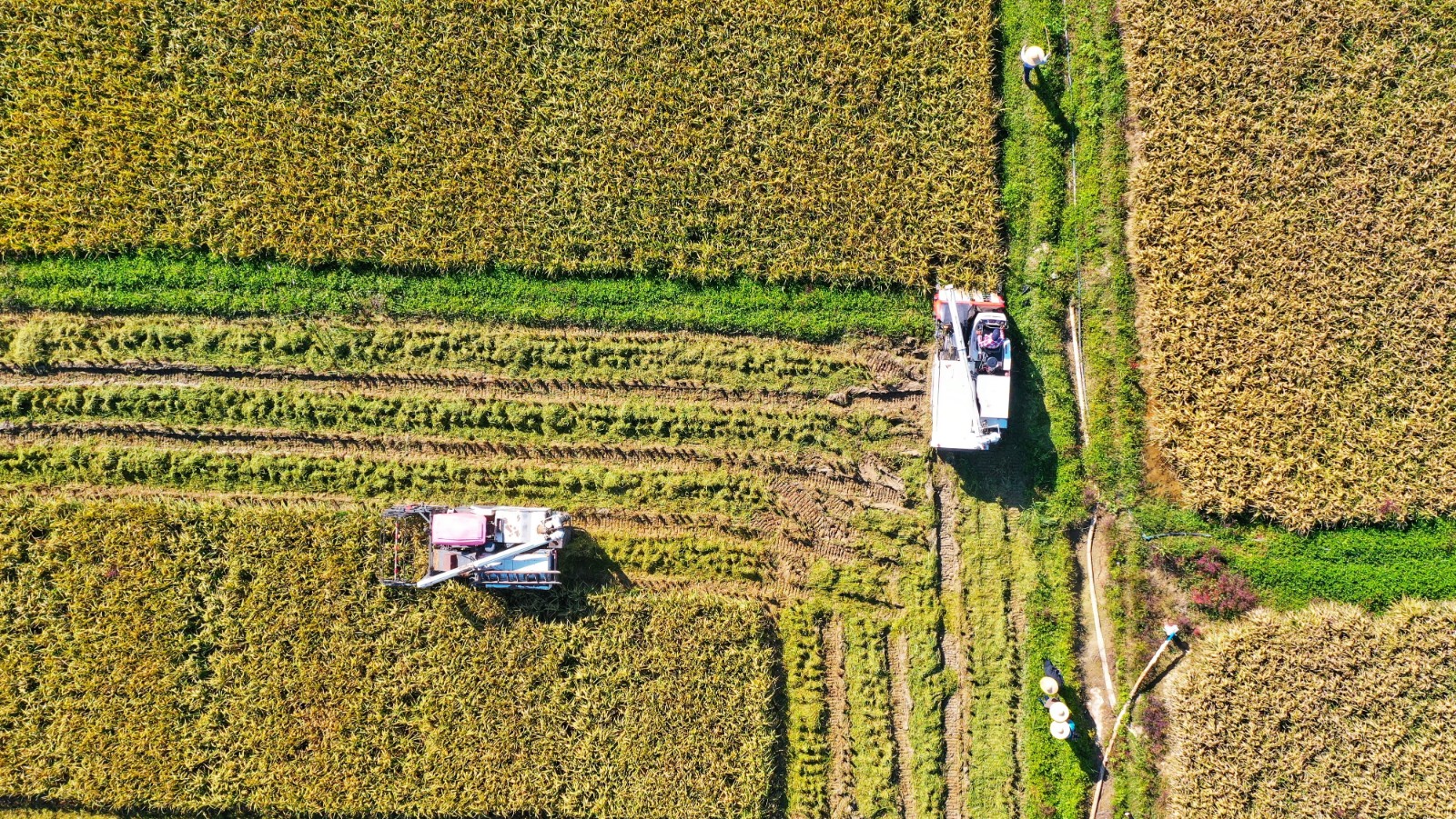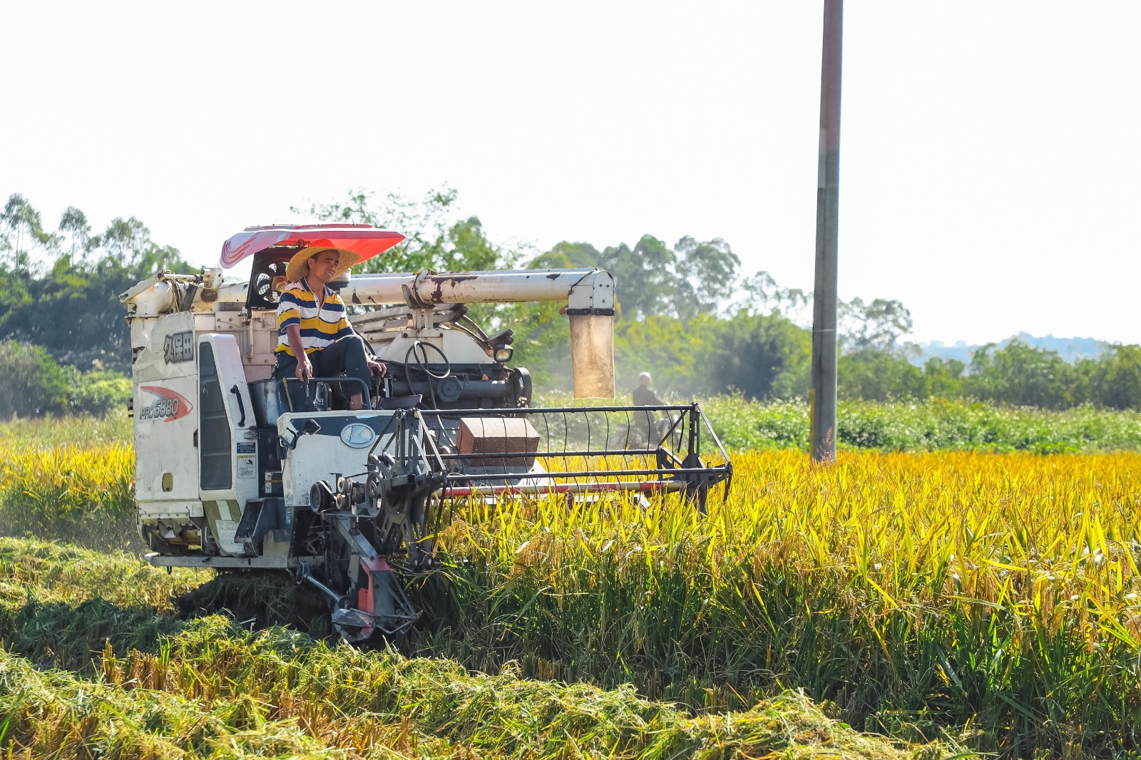 測產現場,收割機正在收割晚稻。肖昆華 攝