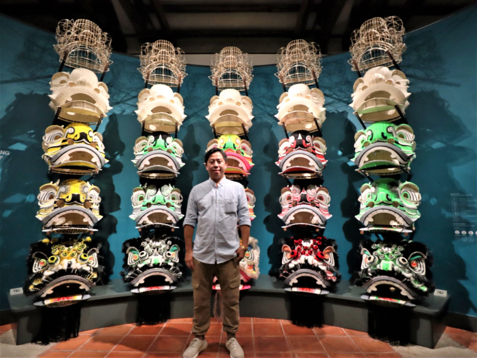 紮作師傅許嘉雄10歲已開始自行研究紮獅技巧,今次為展覽製作了25個獅頭。