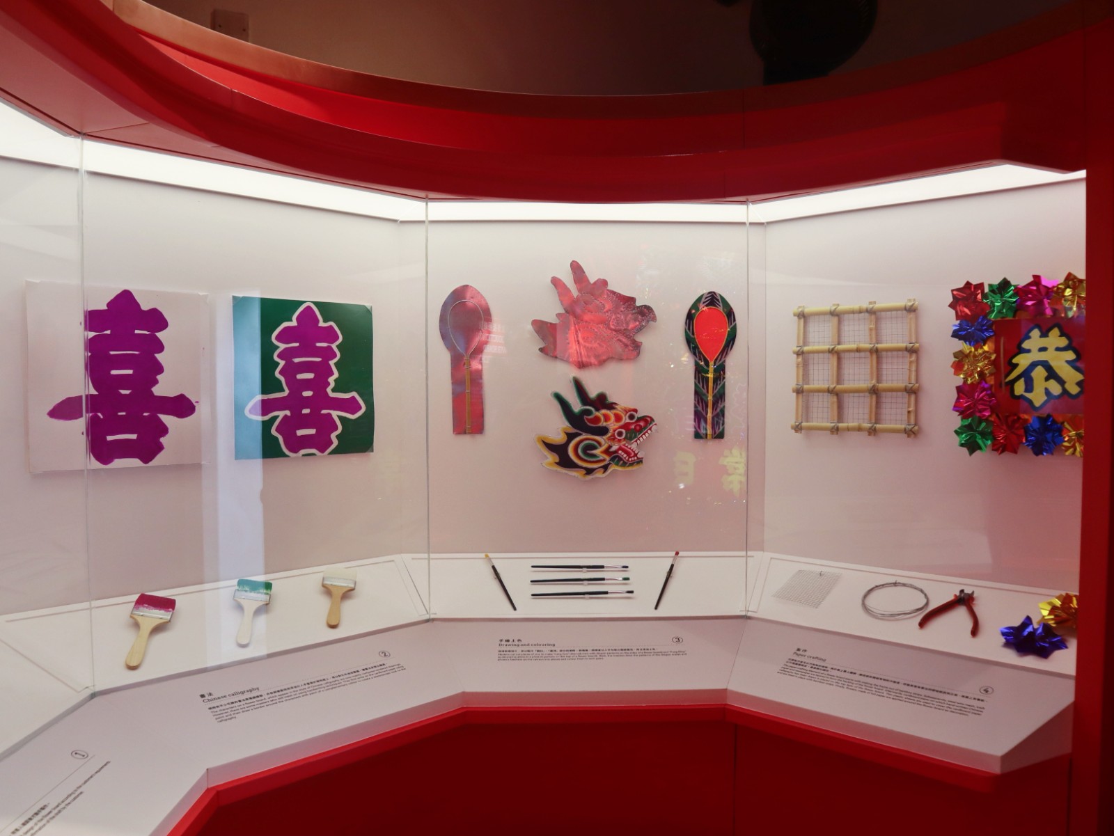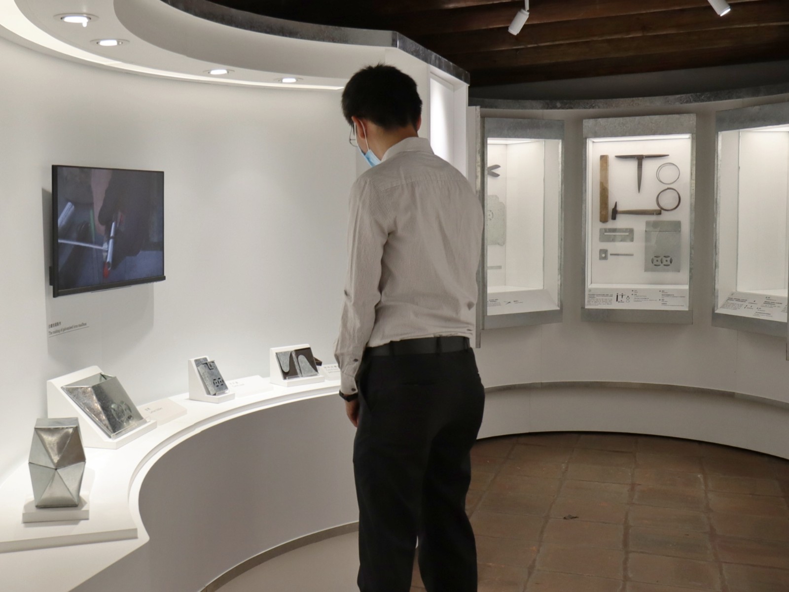 博物館左右兩邊的一間間小橫屋則為「日常·非常」展區,在該部分呈現來自生活及專屬時節的非遺項目。如廣泛應用於日常生活中的白鐵,現今雖已不盛行,但一些老店的鐵閘、筷子筒或唐樓的信箱仍能見到白鐵蹤影,展場展示各式各樣以白鐵為原材料的製成品,展示一塊鐵片如何透過雙手變成實用的器具;平時只能遠觀、掛於高處的花牌工藝,只會於傳統節誕及喜慶場合出現,現時放於觀者的視線水平處,能湊近細究花牌的每一個組件,細看人手寫的大字,細小的空間內感受氣派十足的港產花牌。這些展品沒有玻璃隔開,觀看者能夠近距離觀看。會否擔心展品破損?梁潔玲說:「非遺項目是世代相傳,也是活態存在的,即使不小心碰到、有損壞,也能請傳承人修復。」館方不希望令觀者覺得有距離感,因為大多非遺項目源自生活,也是構成香港獨特文化的一部分。 (撰文:Janice 部分圖片:馮瀚文)