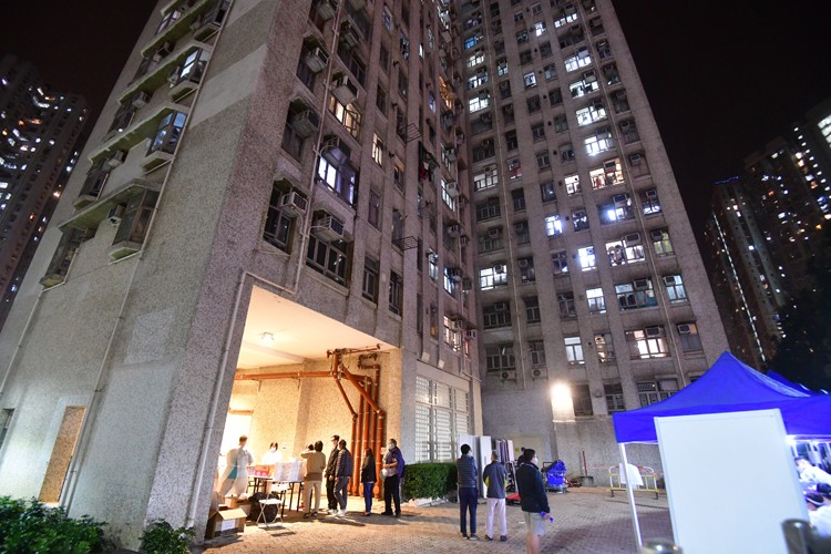 屯門湖翠路201號兆禧苑安禧閣晚上圍封情況。崔俊良攝