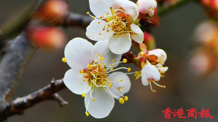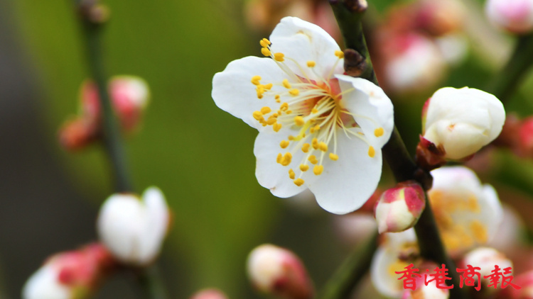 「梅花香自苦寒來」,香港雖然不是苦寒之地,但在新界也能尋到梅花的蹤影。記者在大埔碗窰村一戶民居門口,無意發現一棵白梅花樹,枝頭長滿白色的花蕾,含苞待放,也有不少花朵已經綻放,微微花香吸引了不少蜜蜂。據戶主介紹,這棵梅花已種多年,一般是農曆新年過後才開花,今年可能是之前天氣寒冷,讓梅花提早開放了。