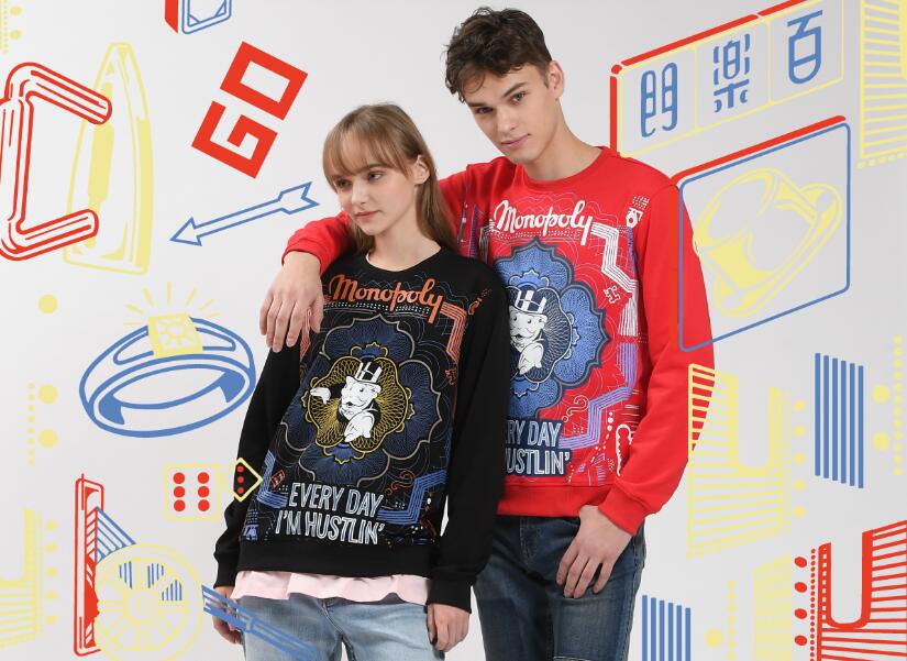 單品包括男女合穿的衛衣、Tee,衣服印上MONOPOLY 經典人物 MR. MONOPOLY、大富翁銀紙、棋盤,以及遊戲中的汽車、鑽戒、寶盒等,象徵成功、富足、歡樂。