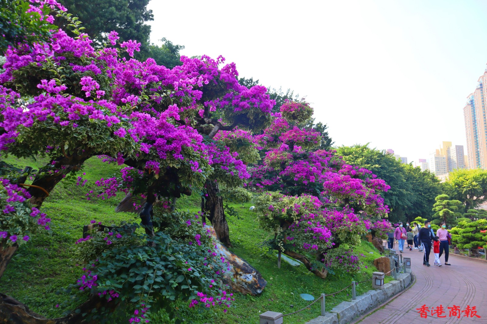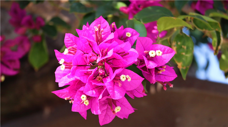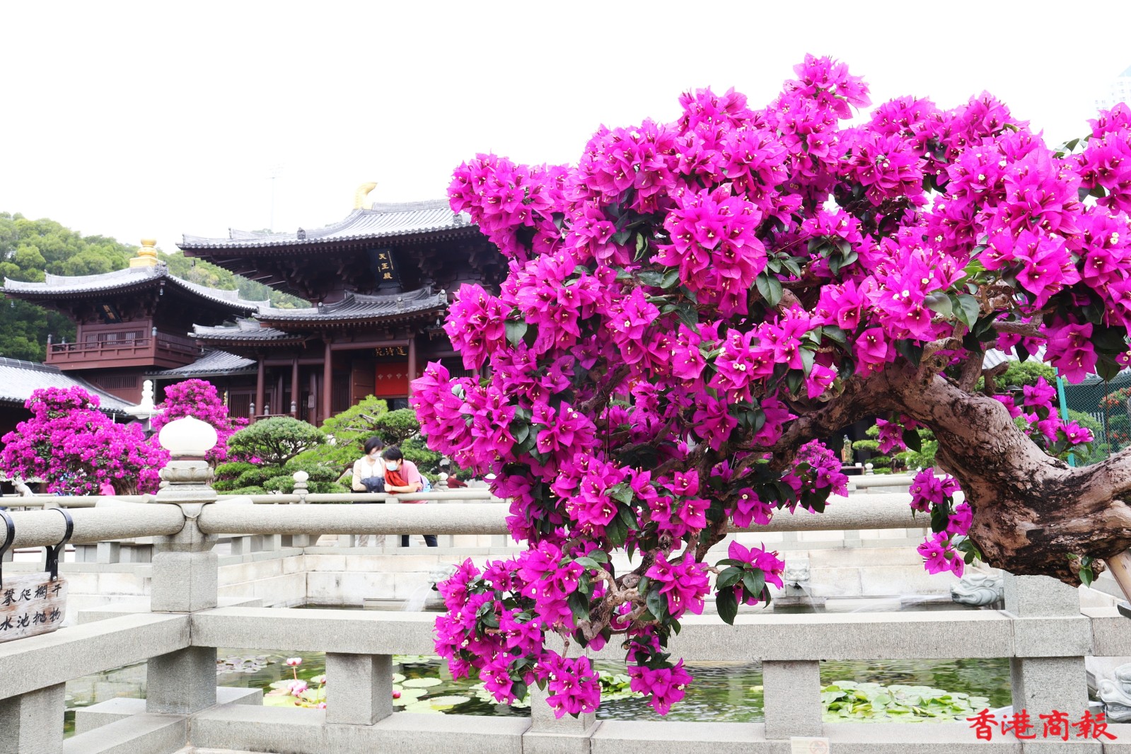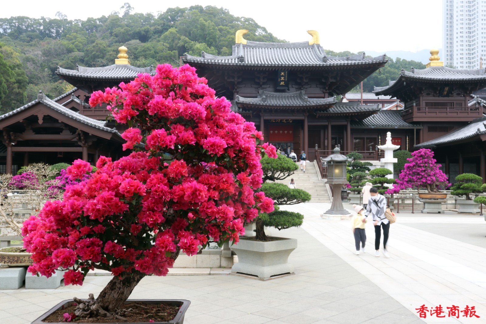 志蓮淨苑的簕杜鵑以盆栽為主,在花匠悉心栽培下,枝葉茂盛,體態優美,為莊嚴的寺廟建築帶來生氣。