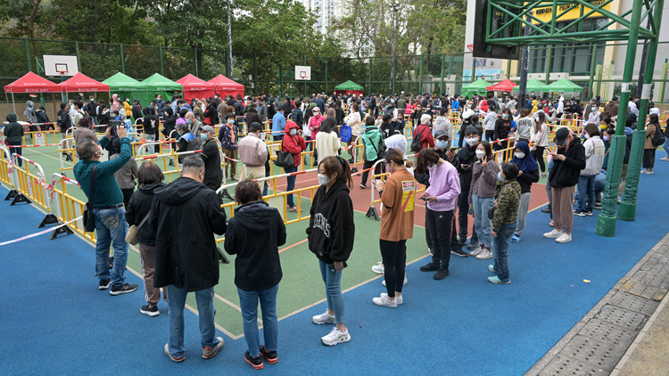 頂圖:逸葵樓居民21日下午排隊檢測。中新社