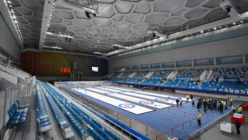 「我們還通過草皮剝離、回鋪的方式,在國家高山滑雪中心區域恢復了3500平方米的亞高山草甸。到了春天,你會看到這片生機盎然的草甸和草甸上隨風搖曳的胭脂花,它們和冬奧場館構成了一幅和諧的畫卷。」李森說。(頂圖:北京2022年冬奧會和冬殘奧會冰壺、輪椅冰壺比賽場地國家游泳中心完成第二次「水冰轉換」並啟動第二期全民冬奧冰壺體驗項目。新華社)