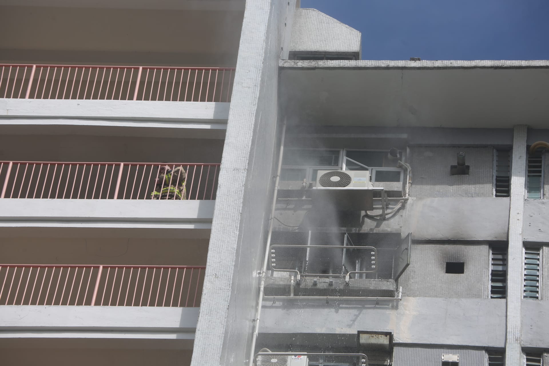 今日(23日)早上10時許,黃大仙竹園南邨華園樓18樓一單位突然起火,冒出大量濃煙,從窗戶和抽氣扇位湧出,沿外牆直捲半空,多名住客聞訊在走廊拉喉灌救不果,報警求助。