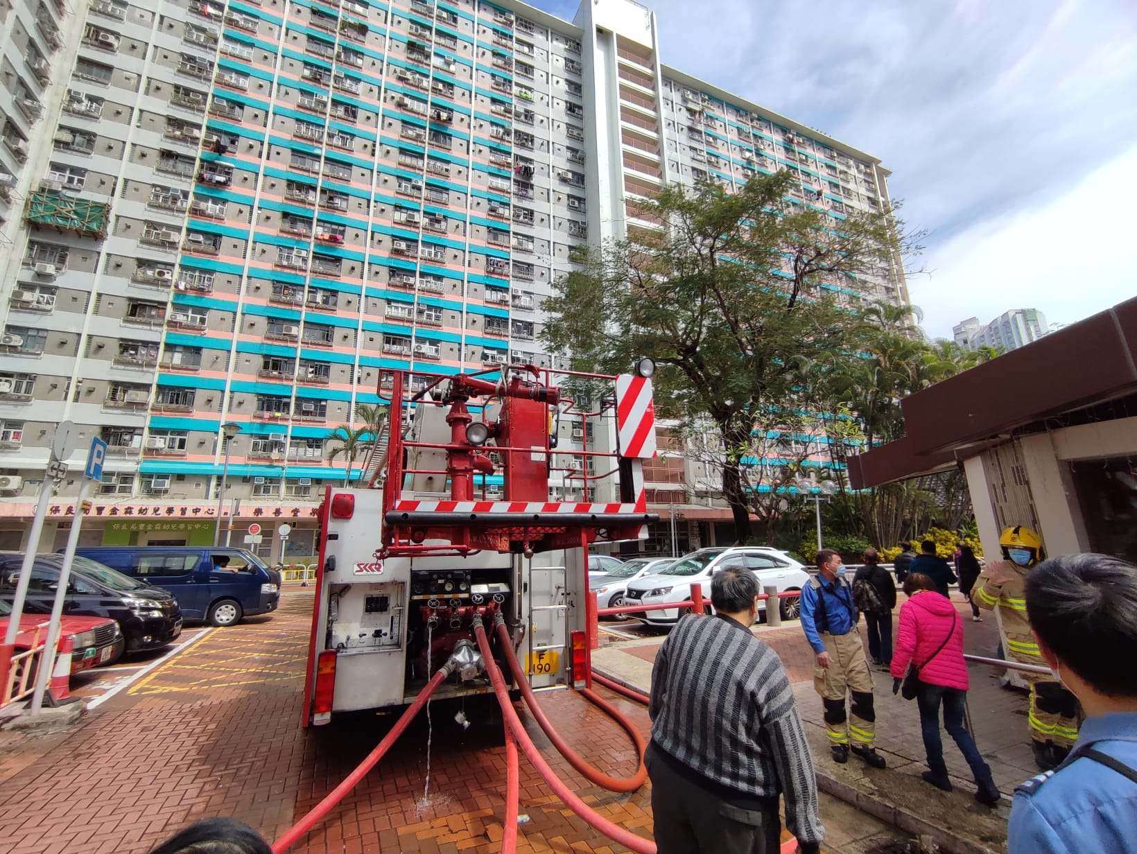 消防員接報到場,派出一隊煙帽隊和開動一條喉進行灌救,約半小時後將火救熄,數十名住客自行疏散到地面安全位置。