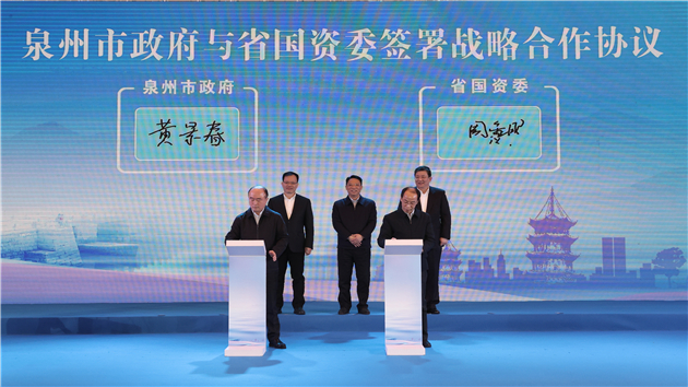 在簽約儀式上,泉州市政府與省國資委簽署戰略合作協議,惠安縣泉惠熱電聯產項目、泉州灣港區石湖作業區7#8#9#泊位、國家集成電路投資基金二期項目等21個項目進行現場簽約,簽約項目總投資額約654億元。