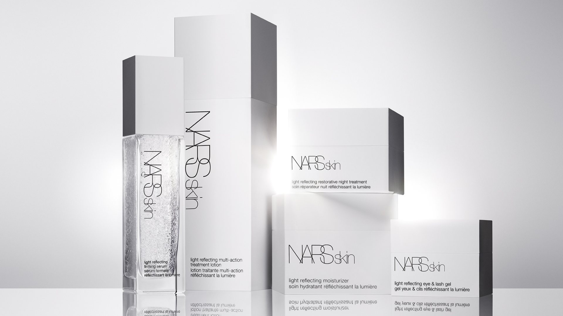 擁有白皙、具光澤感的肌膚幾乎是每個女士的追求,想不化妝或化淡妝時皮膚依然水潤富光澤,平日護膚就不能偷懶。NARS推出全新LIGHT REFLECTING原生光護膚系列,將獨家聚光科技注入包括淨膚水、晚霜、精華等5款護膚產品,令肌膚呈現具年輕感的清透光澤,改善質感,也為後續化妝打下基礎。