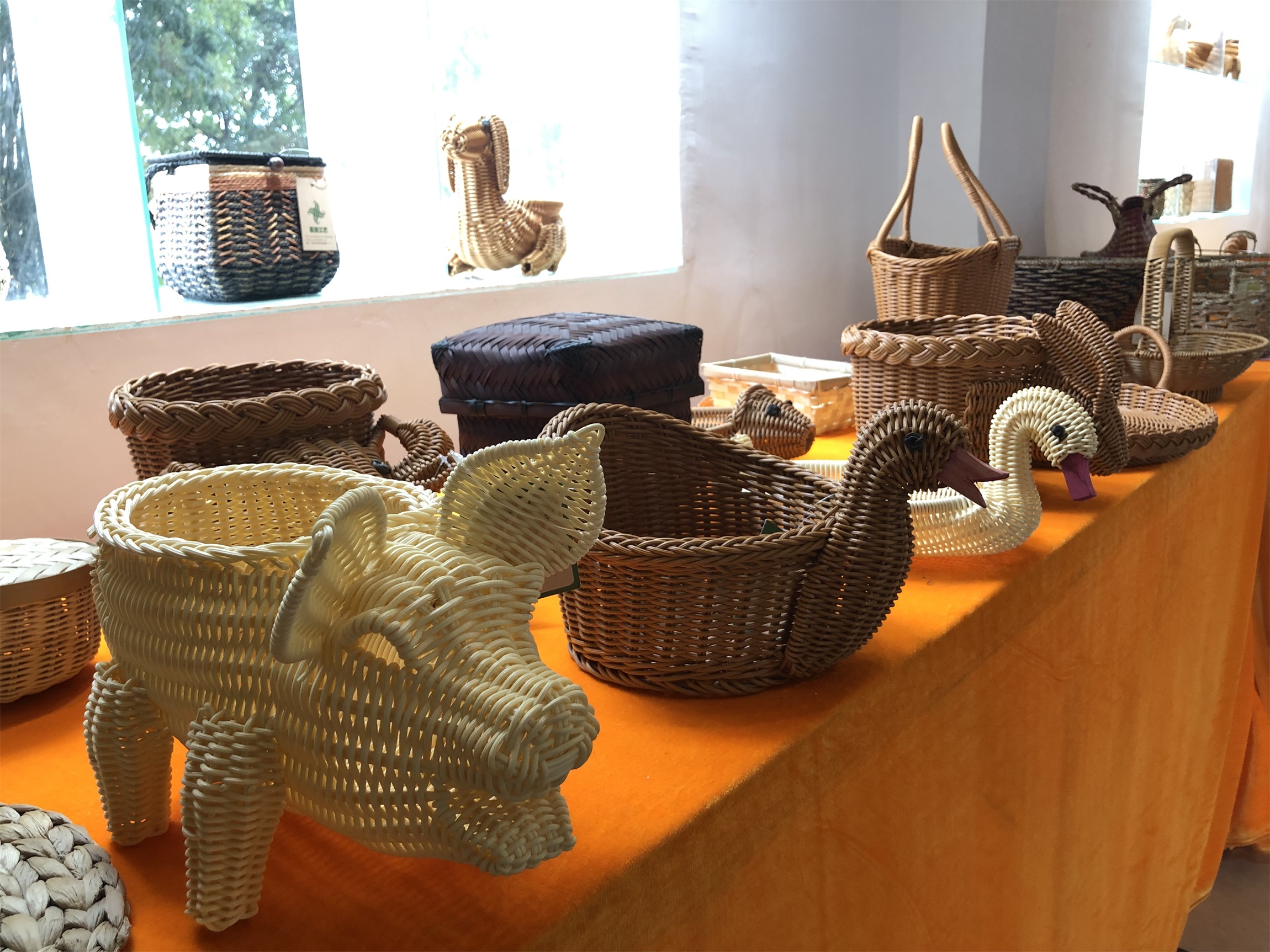 在博白鎮大良村芒編產品展示廳,簍、筐、手提包、燈具、桌椅等生活用品和模仿豬、鴨、兔等形象的工藝品琳琅滿目、風格各異。該村在大力提升村容村貌的同時,着力推動鄉村產業發展,引進編織企業成立加工車間,讓村民實現在家門口就業。