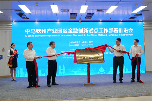 2020年8月26日, 「中馬欽州產業園區金融創新試點工作部署推進會」召開並舉行創新試點揭牌儀式,簽訂銀企創新試點意向合約41.8億元人民幣